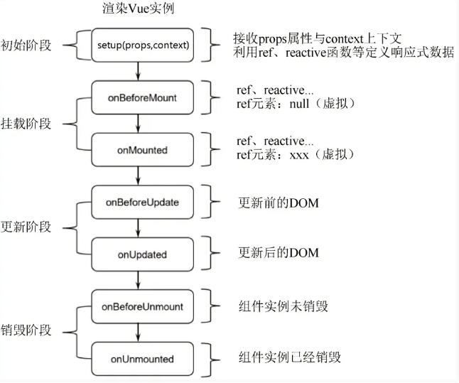 onMounted:在组件挂载完成后调用。这个阶段DOM已经形成,可以执行DOM操作或发送异步请求。
